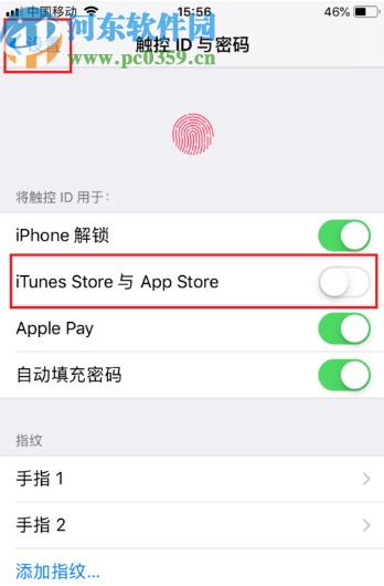 2.进入到这个密码的设置界面之后我们看到第一个模块,将触控ID用于哪些操作中,我们在这些操作里面找到“iTunes store 与app store”选项,然后将他的开关关闭。
