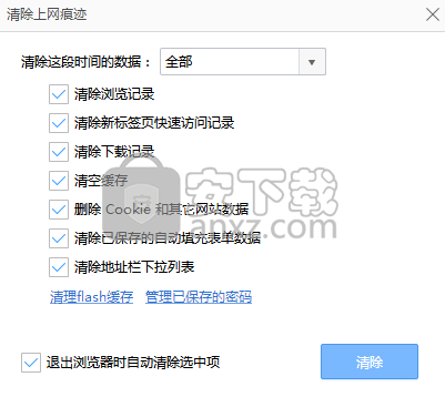 4.最后点击清除上网痕迹就会出现下图所示的界面了,在界面中就有很多选项供我们选择,大家根据自己的需求选择之后点击清除按钮即可。