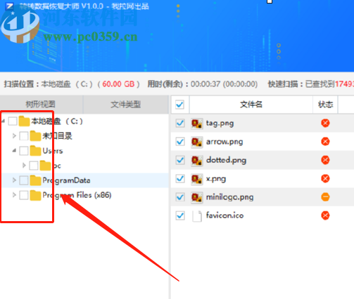 4.点击开始扫描之后我们需要等待扫描进度完成,然后在扫描完成之后的界面左边我们就可以看到扫描出来的文件列表了。