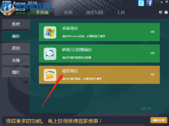 Renee Becca是一款能够帮助用户备份电脑文件的功能软件,相信有很多用户的电脑中都有很多的重要文件,如果担心一不小心删除了恢复不回来的话就可以通过这款软件来将重要文件备份下来,除了备份文件之外软件中还有还原、克隆功能,是一款非常实用的电脑工具。不过有很多没有使用过这款软件的用户还不知道要如何备份电脑中的文件,所以小编今天就来跟大家分享一下具体的操作方法步骤吧,感兴趣的朋友不妨一起来看看小编分享的方法教程,希望能帮到大家。