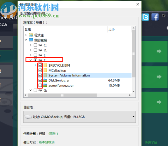 3.点击档案备份之后,我们在出现的界面中选择要备份文件所在的磁盘之后,再勾选要备份的文件。