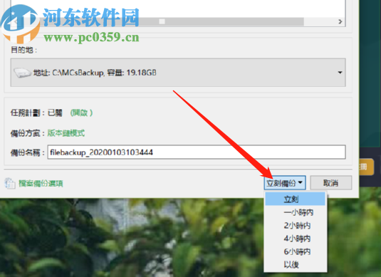4.选择完成之后我们就可以在软件界面的右下角找到立刻备份这个功能按钮了,我们可以选择指定的时间备份也可以选择立即备份。