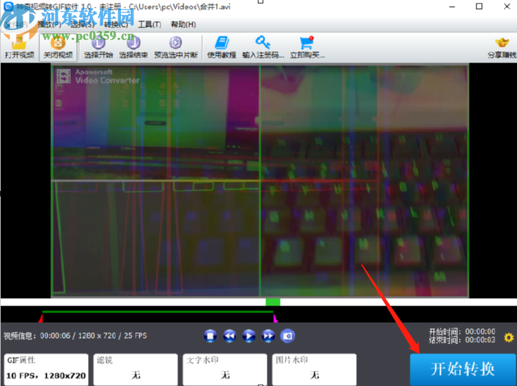 6.看到预览结果之后可以在选择更改开始时间和结束时间,最后只需要点击界面右下角的开始转换按钮即可转换。
