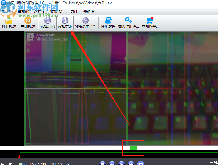 4.下一步就是使用同样的方法来选择gif图片的结束时间,点击上方的选择结束这个功能按钮即可。