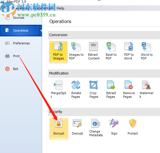 3.点击打开按钮之后文件就成功添加进来了,然后我们切换到Opertions这个模块中,并点击下方的Encrypt这个加密功能。