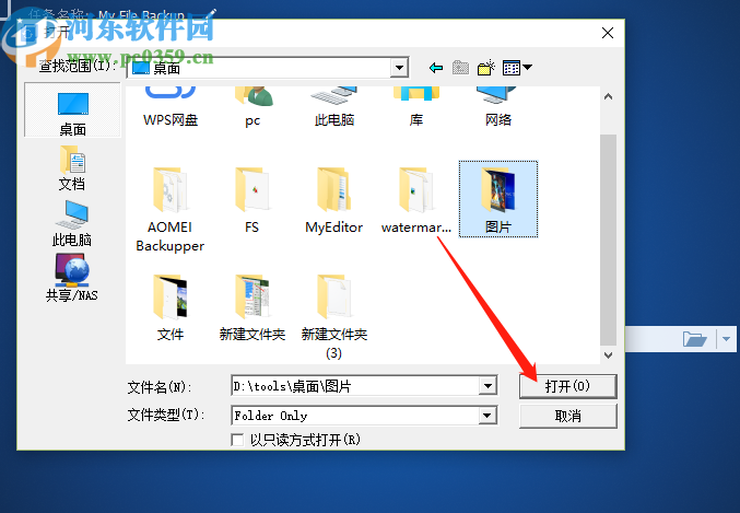 3.点击添加目录之后下一步在打开的界面中选中要备份的那一个文件夹,选中之后点击打开按钮。