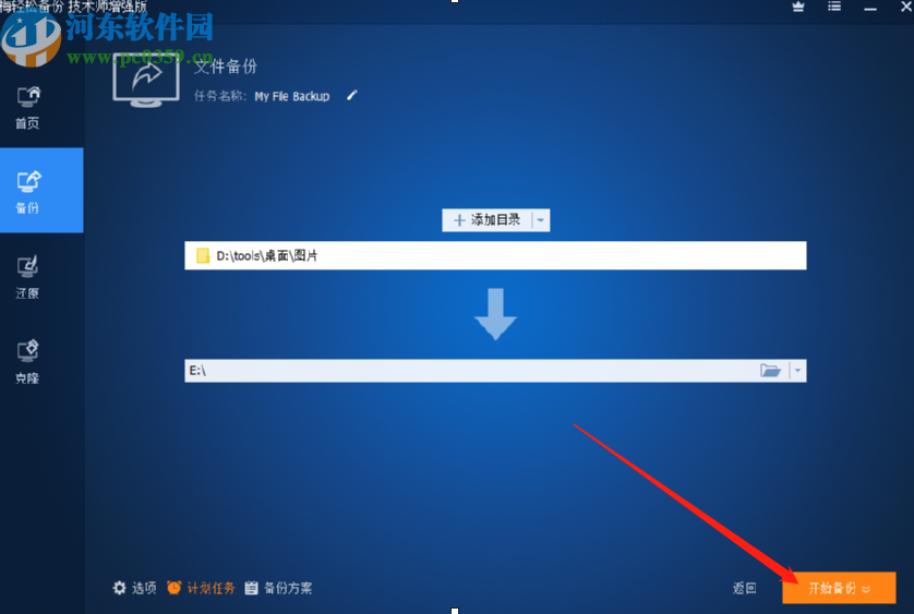 6.定时执行备份任务的时间设置完成之后,我们就可以回到备份界面了,点击界面右下角的开始备份这个功能按钮定时备份任务即可生效。