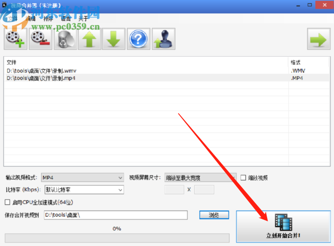 6.最后我们在设置好输出目录之后就可以点击界面右下角的立刻开始合并这个功能按钮来开始合并操作了。