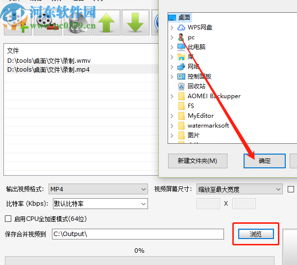 5.调整好合并视频的顺序之后,我们还可以点击浏览这个功能按钮来自定义设置输出视频的储存位置,大家根据自己的需求设置即可。