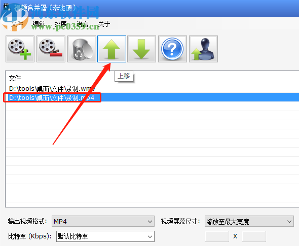 4.输出格式设置完成之后我们可以在界面中选中视频文件,然后点击上方的上移或下移功能按钮来调整合并视频的顺序。
