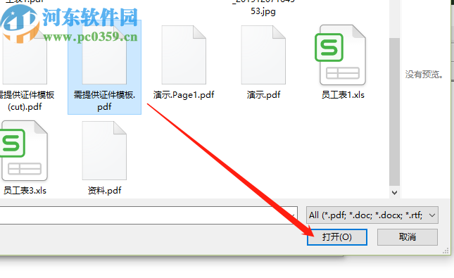 2.点击之后接下来在打开的选择文件界面中选中要解密的PDF文件之后点击下方的打开这个功能按钮。
