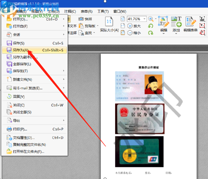 6.最后一步我们在设置好水印之后可以点击界面左上角的文件选项,然后在出现的界面中选择另存为选项将文件保存下来即可。