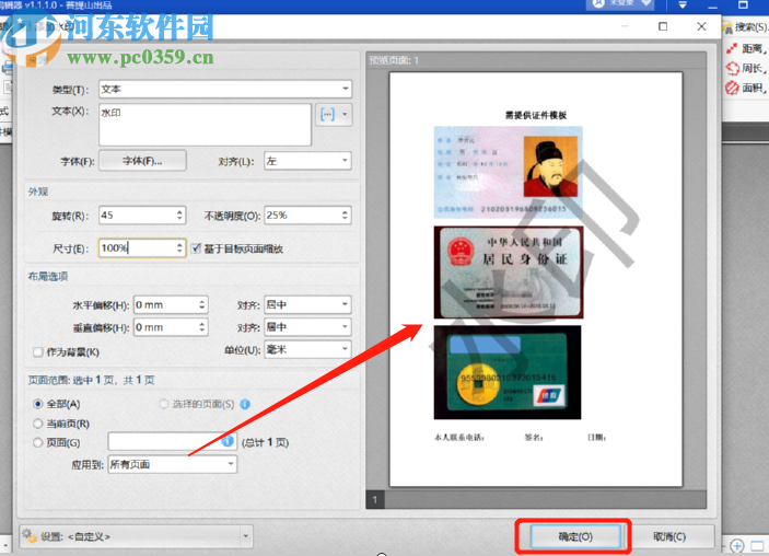 5.设置完成之后在界面的右边可以预览到水印的效果,确认效果满意之后点击右下角确定按钮就可以保存设置好的水印了。