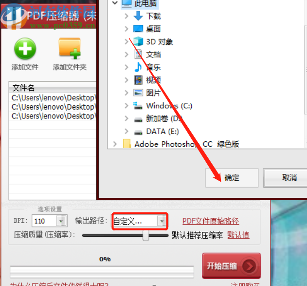 4.然后我们还可以在输出路径中设置为自定义路径,然后在出现的界面中选择自定义输出路径之后点击确定按钮。