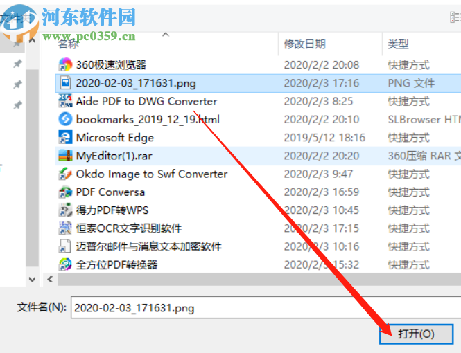 2.点击打开选择图像文件的窗口之后,在这个窗口中找到想要识别文字的图像文件,选中之后点击右下角的打开按钮。