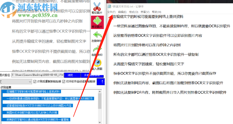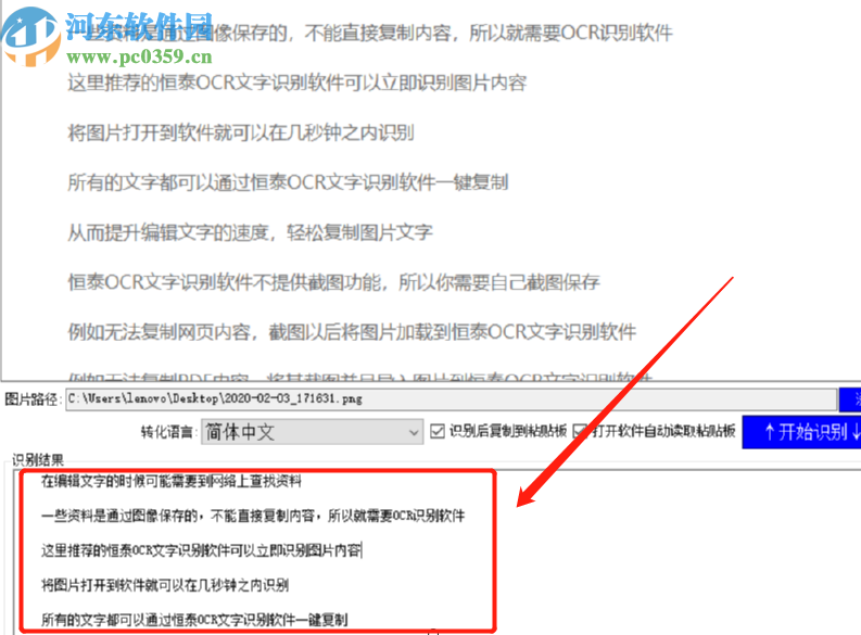 4.等到识别完成之后在界面下方的空白区域就会显示识别出来的一些文字内容了,如下图中所示。
