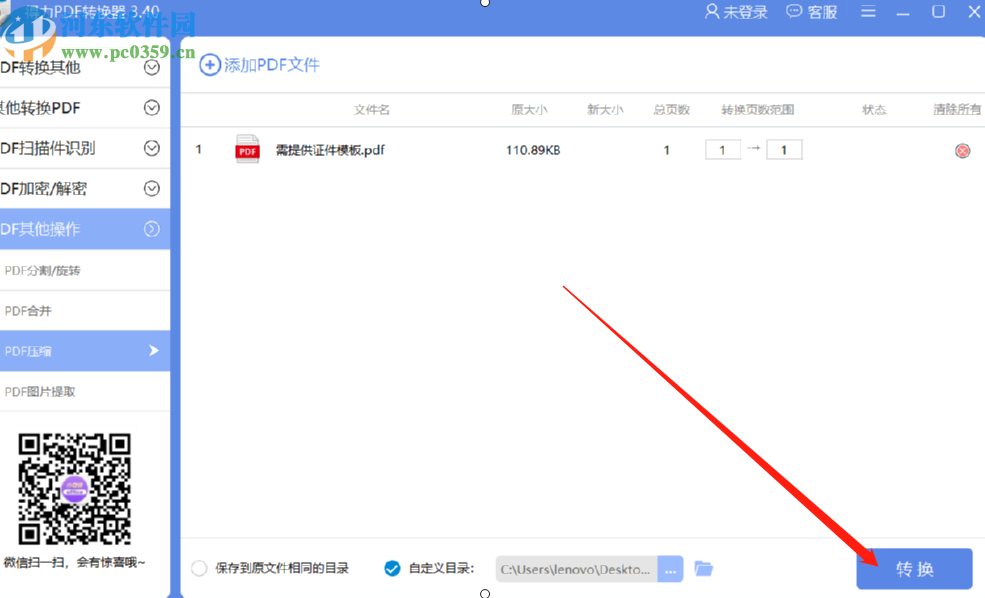 5.设置好保存目录之后我们就可以点击界面右下角的转换这个功能按钮来开启压缩PDF文件的操作了。