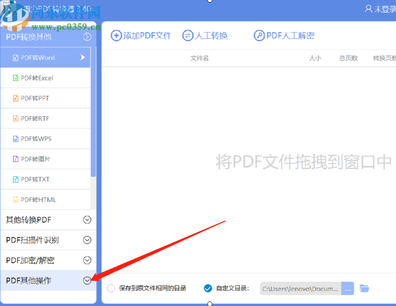 1.首先第一步我们打开软件之后在软件的左边列表中找到PDF其他操作这个选项,然后点击打开它。