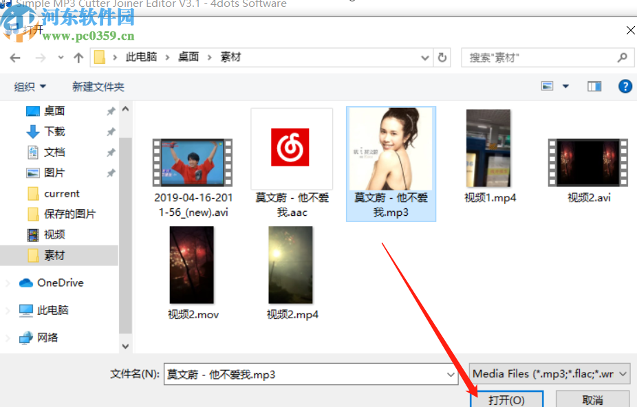 2.点击打开按钮之后接下来在出现的界面中选择想要分割的MP3音频,选中之后点击界面右下角的打开按钮。