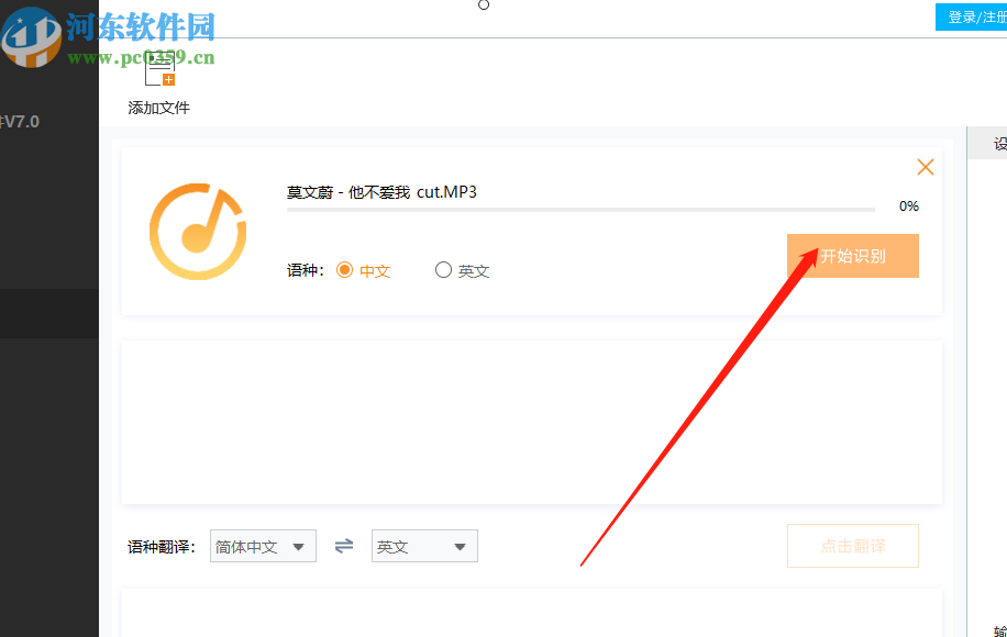 2.切换到语音识别这个功能界面之后,我们需要在界面中点击加号来准备添加要识别的语音文件,如下图中所示。