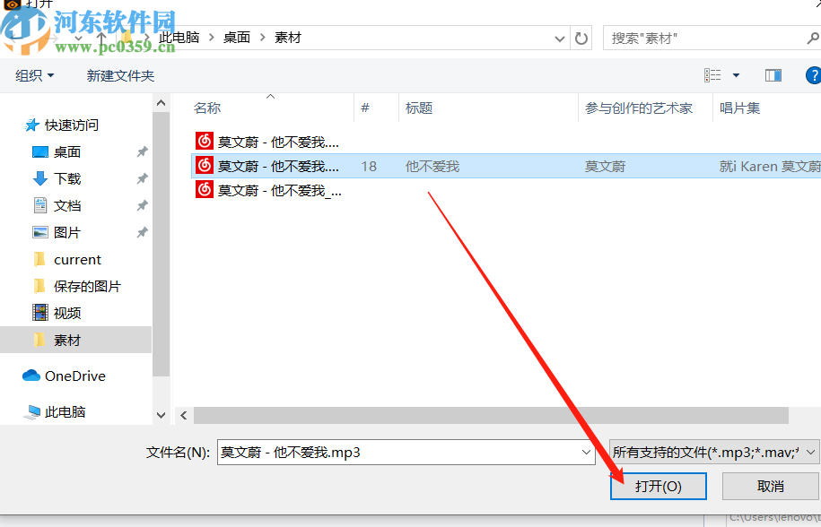 3.点击加号之后在出现的界面中我们找到要识别的语音文件,然后点击选中之后点击右下角的打开按钮。