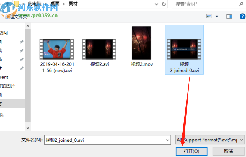 2.点击打开选择文件的界面之后,在其中找到我们需要分割的视频文件,找到并选中之后点击打开按钮即可将它们添加到软件中。