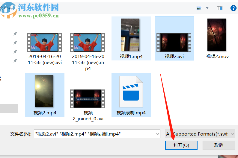 3.点击打开选择文件的界面之后如下图中所示,我们在其中选中几个要合并的视频文件之后点击下方的打开按钮即可将它们添加到软件中。