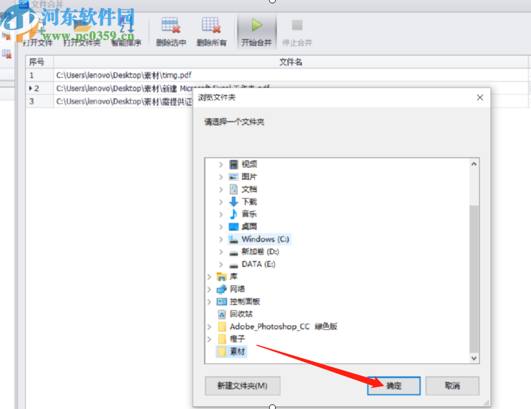 4.点击开始合并之后在界面中会出现一个选择合并文件储存位置的界面,我们选中目标位置之后点击确定按钮即可。