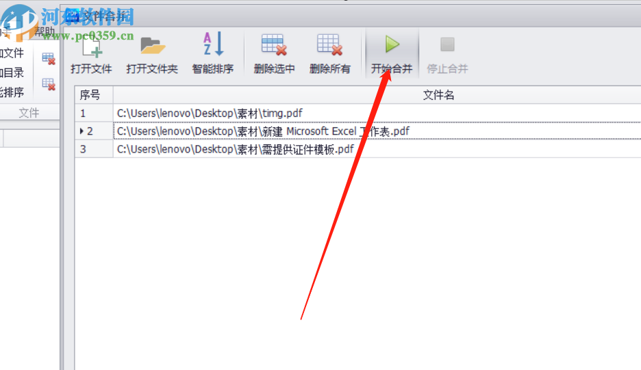 3.点击将要合并的文件成功添加到软件界面之后,下一步就是在界面中点击上方的开始合并这个功能按钮,如下图中所示。