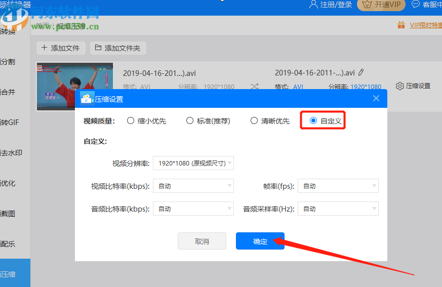 5.点击压缩设置之后紧接着会出现压缩设置的窗口,在其中我们选择自定义设置的话可以根据自己的需求来更改一些压缩参数。