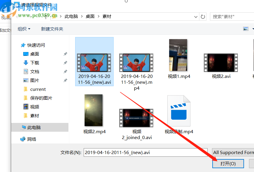 3.点击添加文件之后,下一步就是在出现的界面中选中要压缩的视频文件,选中之后点击界面下方的打开按钮。