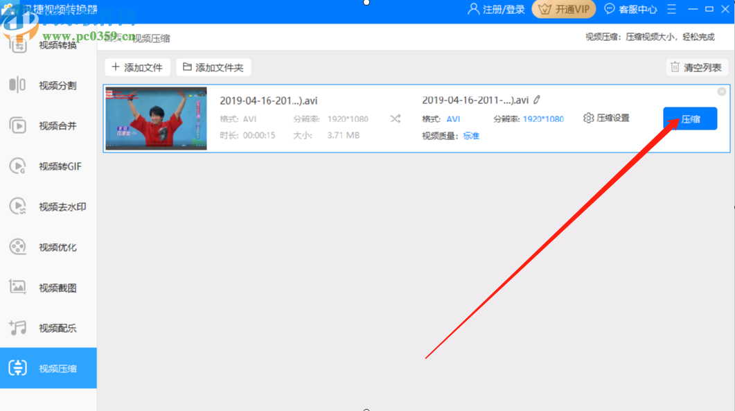 6.压缩设置完成之后,我们就可以回到主界面中点击视频列表后面的压缩这个功能按钮来开始压缩视频文件的操作了。