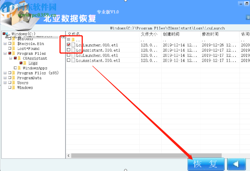 4.紧接着我们找到想要恢复的文件,勾选它们前面的小方框,然后点击界面右下角的恢复这个功能按钮就可以进行恢复了。