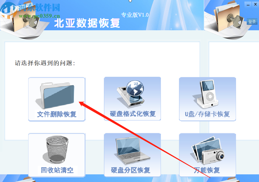 1.首先第一步我们打开软件之后点击主界面中的文件删除恢复这个功能模块,点击之后进入到恢复删除文件的功能中。