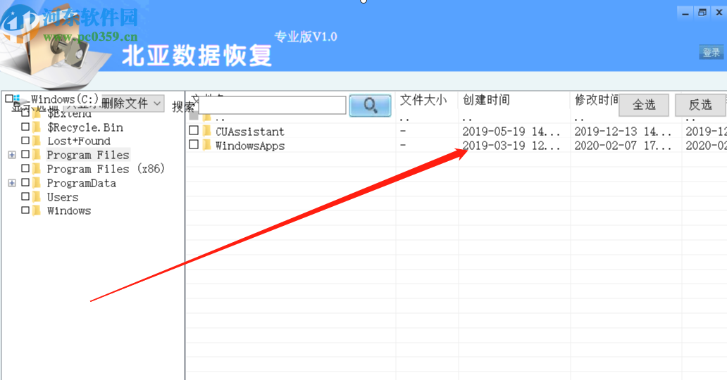 3.点击扫描之后等待一会在界面中就可以看到扫描到的一些删除文件了,如下图中所示。并且还有文件的创建时间和修改时间等信息。