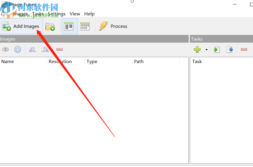 3.点击打开按钮之后图片就添加成功了,然后我们点击右边Tasks模块中的加号,添加批量处理图片文件的任务。