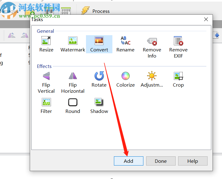 4.点击加号之后会出现下图所示的界面,然后我们在其中选中Convert这个功能并点击下方的添加按钮。
