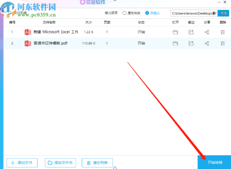 4.点击打开按钮之后文件就成功添加到软件中了,然后下一步我们就可以点击界面右下角的开始转换按钮来开始合并操作了。