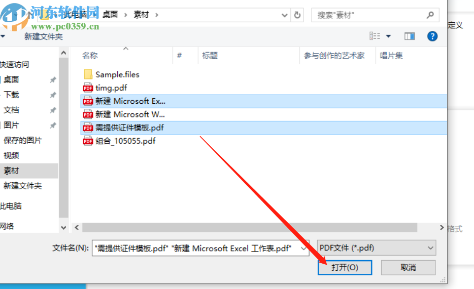 3.点击加号之后下一步就会来到选择文件的界面了,在这个界面中我们选中要合并的PDF文件之后点击右下角的打开按钮。