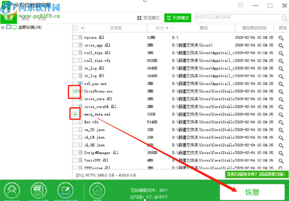 5.最后等到扫描完成,我们在界面中找到想要恢复的文件,点击勾选之后在点击右下角的恢复按钮就可以将这些文件恢复回来了。