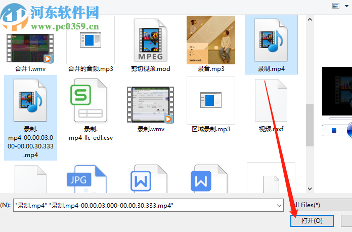 3.点击添加文件按钮之后,下一步就会打开选择文件的界面,在这个界面中我们选中需要合并的多个视频文件之后点击打开按钮。