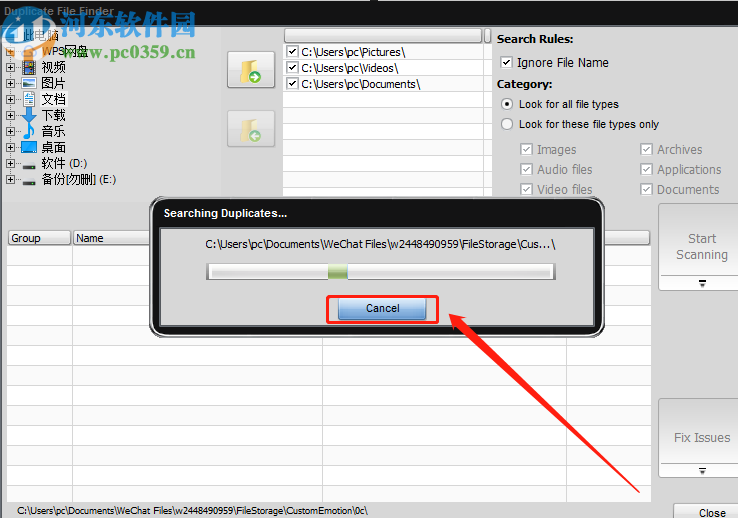 3.等到我们将要扫描的文件夹路径都添加成功之后,就可以点击界面中的开始扫描这个功能按钮了,点击之后软件就会开始扫描重复文件。