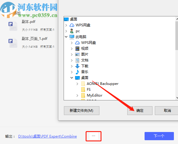 5.再下一步我们在输出选项后面点击三点按钮,在出现的界面中可以选择合并文件的输出储存位置,选中之后点击确定按钮即可。