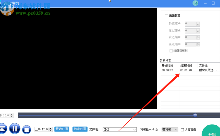 6.最后我们在右边列表中选中设置好剪切时间的片段之后,点击界面右下角的开始这个功能按钮就可以开始剪切视频的操作了。