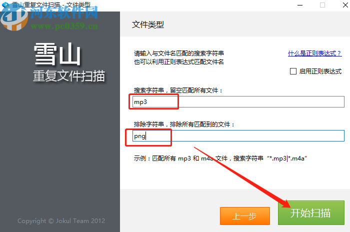 4.点击下一步之后会看到下图所示的界面,我们需要在这个界面中选择想要扫描的重复文件类型,也就是要扫描哪种类型的重复文件,根据自己的需求填写完成之后点击开始扫描按钮。