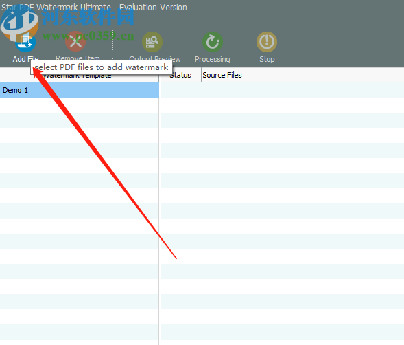 6.最后我们设置好水印效果之后回到软件的主界面,点击界面中的Processing这个功能按钮就可以开始为PDF文件添加水印了。