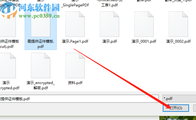 2.点击添加文件之后会打开一个选择文件的界面,在这个界面中我们找到要添加水印的PDF文件,然后点击打开按钮。