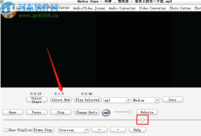 4.然后下一步就是选择剪切音频片段的结束时间了,移动到想要剪切的结束位置之后点击Select End这个功能按钮即可选择结束时间。