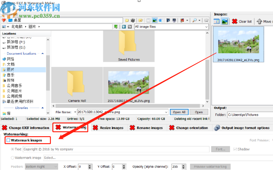 2.图片加载成功之后在右边的界面中就可以看到图片文件了,然后我们选中它,打开watemarking这个功能模块,然后勾选下方的Watermark images这个选项。