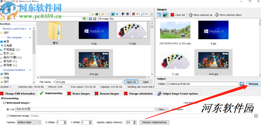 6.最后我们预览效果满意之后,就可以点击界面右边的Process这个功能按钮来开始给图片添加水印的操作了。